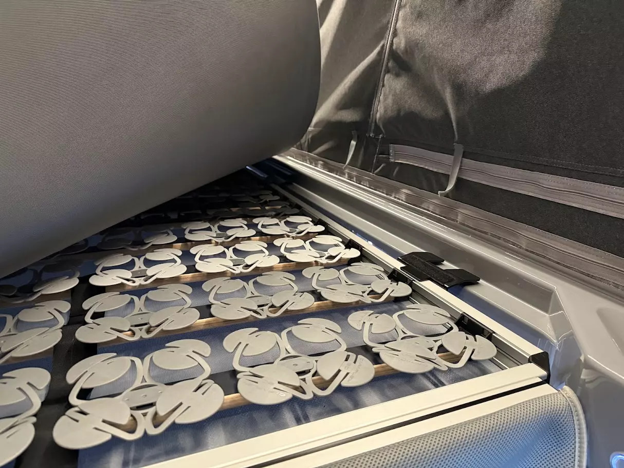 Vysoké nůžkové zvedáky poskytují výrazně více místa pro nohy a umožňují spát s hlavou směrem dozadu. Ve srovnání s předchozím řešením se zdvih zvýšil o 25 cm.
