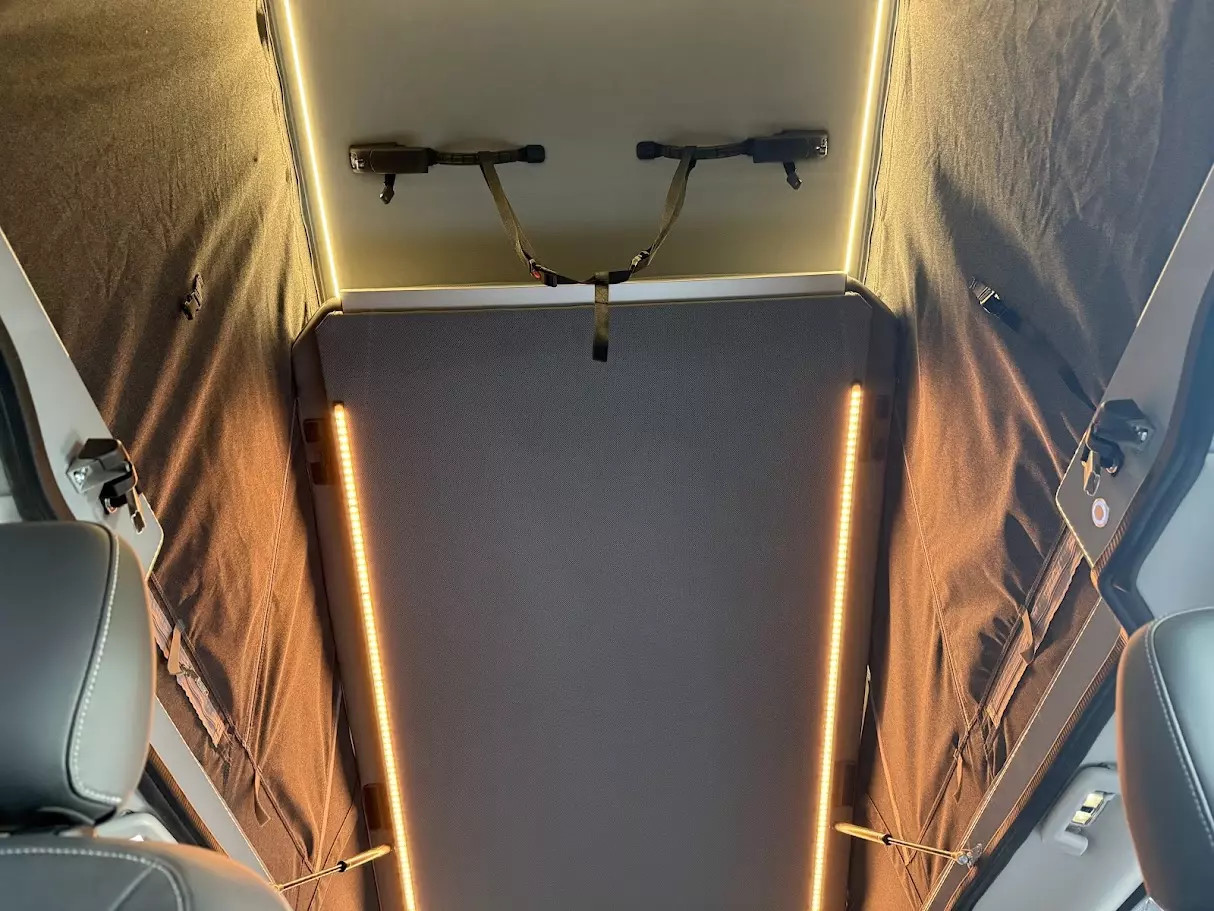 Výsledkem kompletního přepracování je spací střecha pro Ford Transit s dlouhým rozvorem, která přináší řadu výhod.